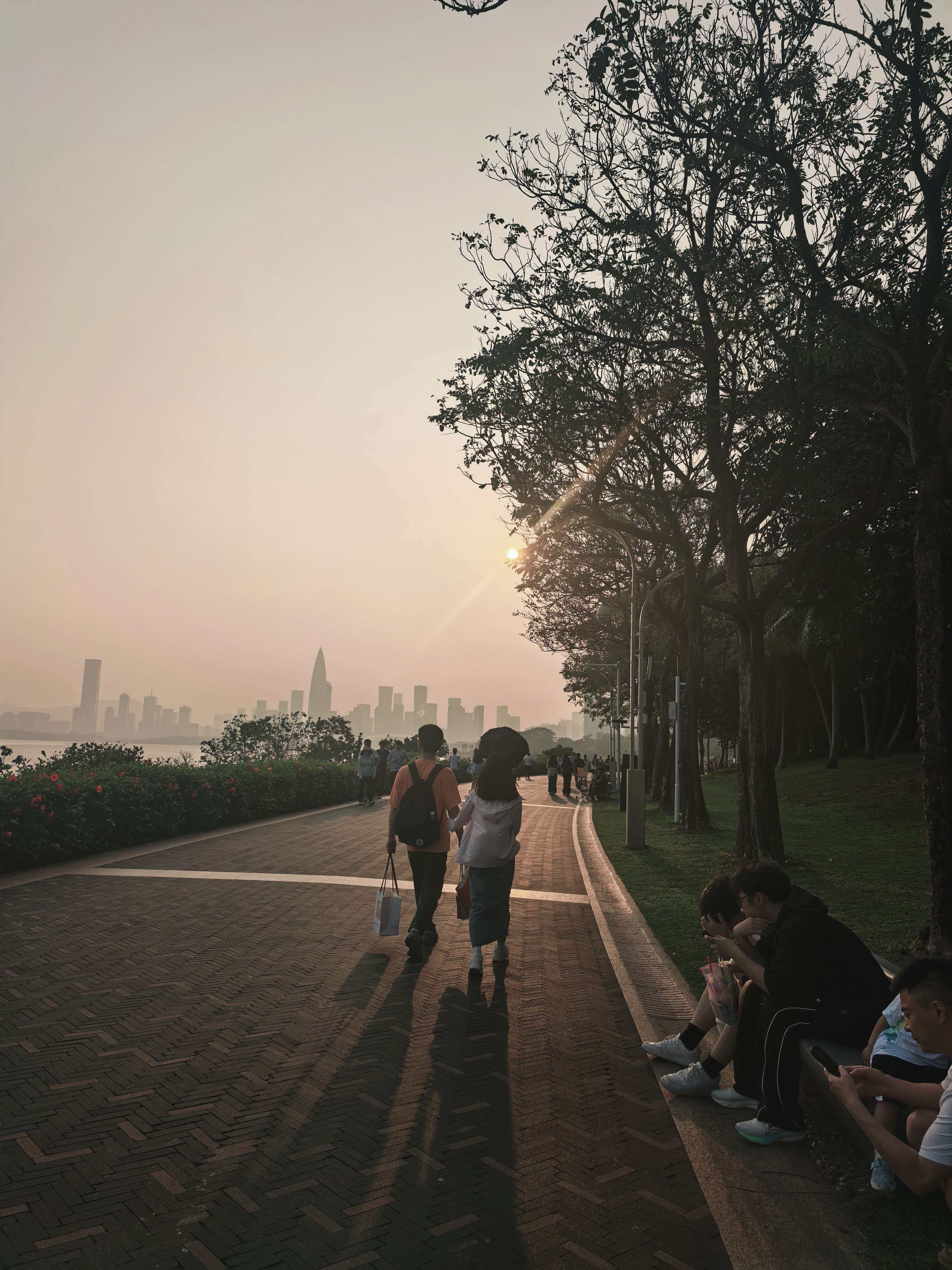 走了一段路,发现一个女生一会在我前面,一会在我后面,视野内总是能看到,于是想了很久鼓起勇气去问了她,是不是也是一个人在这边玩,可不可以一起走。女生很欣然得答应了,我们一路聊,得知她来深圳才一个月,24年毕业后在郑州工作一年多,现在在她二哥家住,今天也是第一次来深圳湾探索,很有意思。
